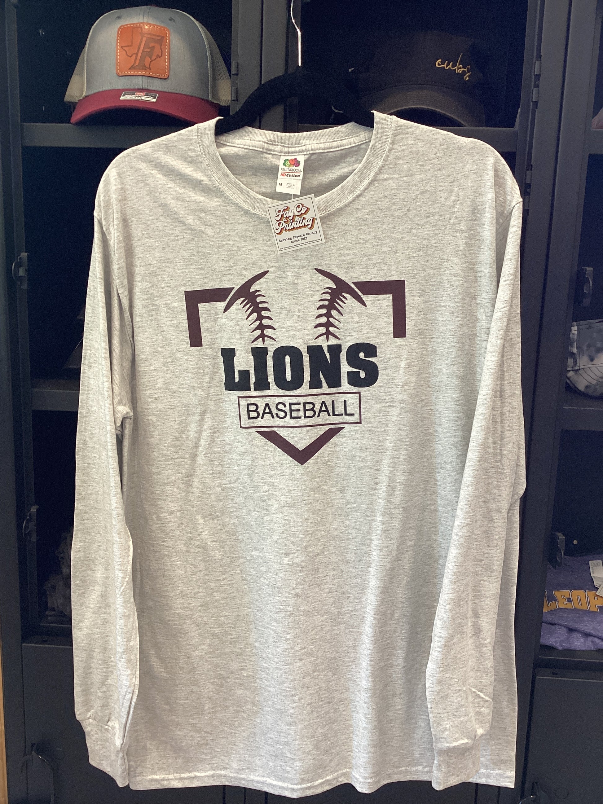 Fayetteville Lions baseball ash/grey long sleeve tee. SKU84