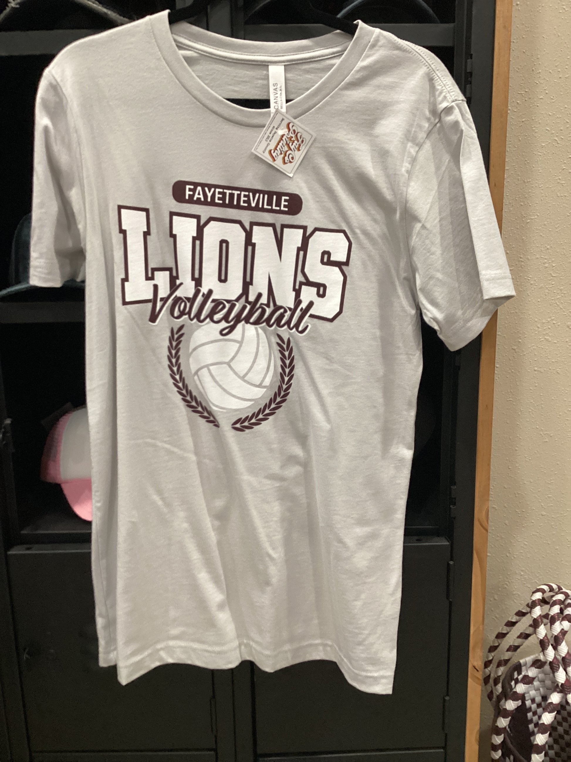 Adult Grey Fayetteville Tee with “ Lions Volleyball “ screen printed.SKU57