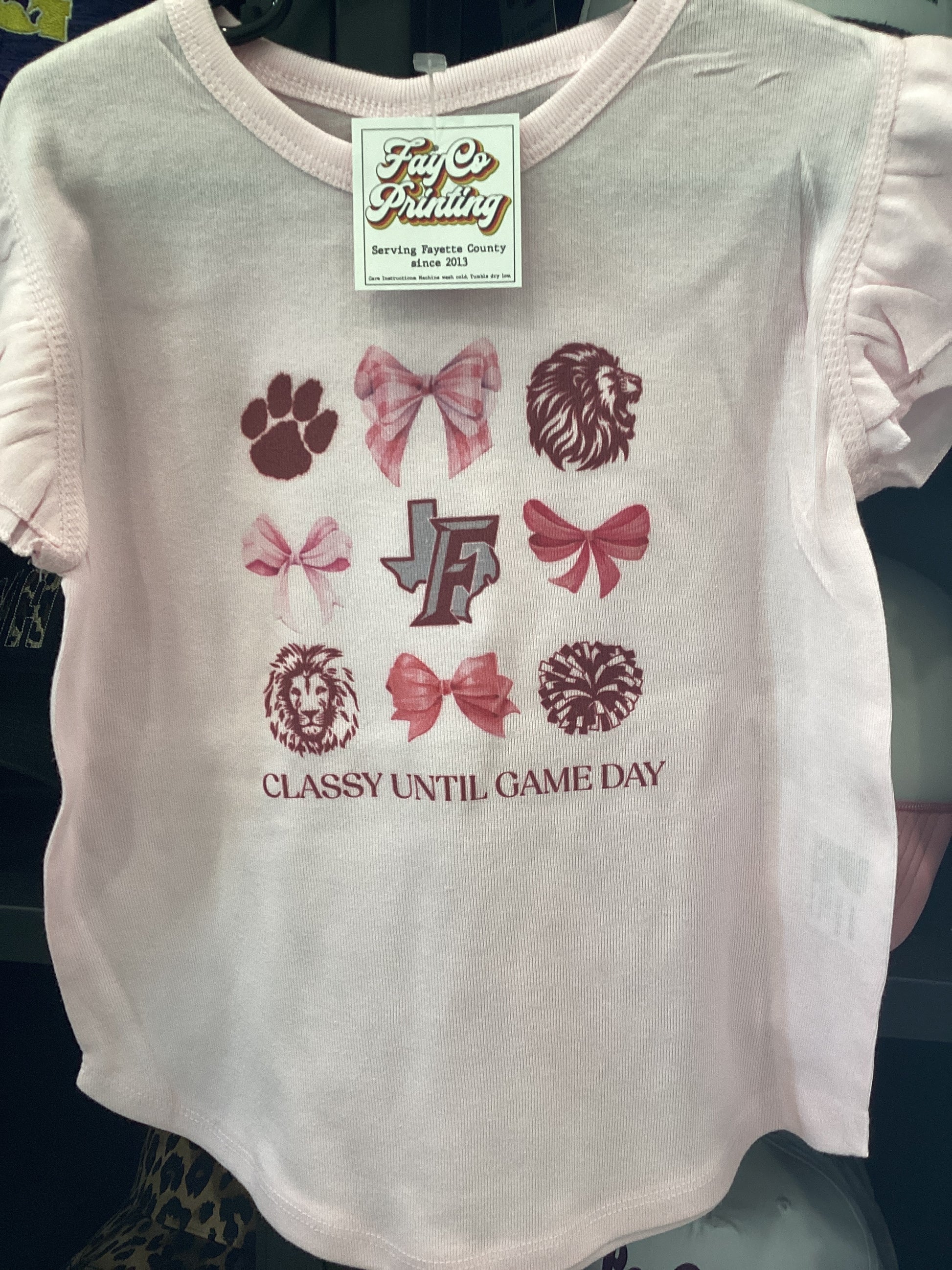 Fayetteville tee “classy until game day” flutter tee. SKU61