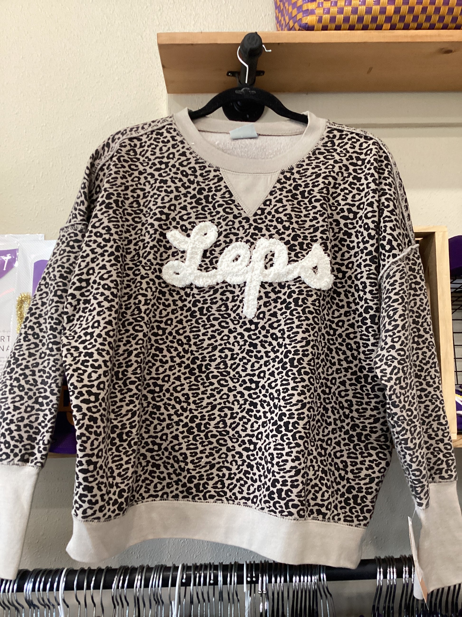 Leopard print sweater with Embroidered “Leps” on the front super soft and cozy. SKU98