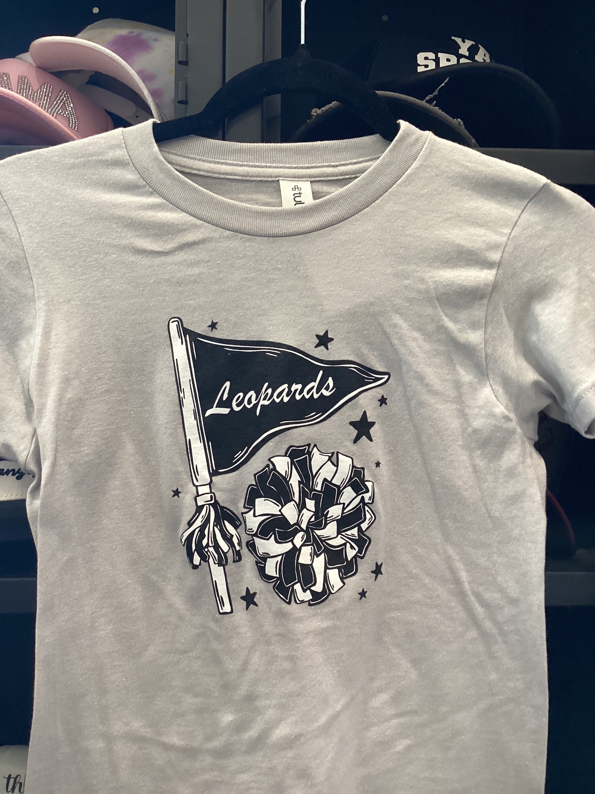 Cute grey youth cheer tee to cheer on the leopards at any event!! Come in Adult and Youth sizes. SKU93