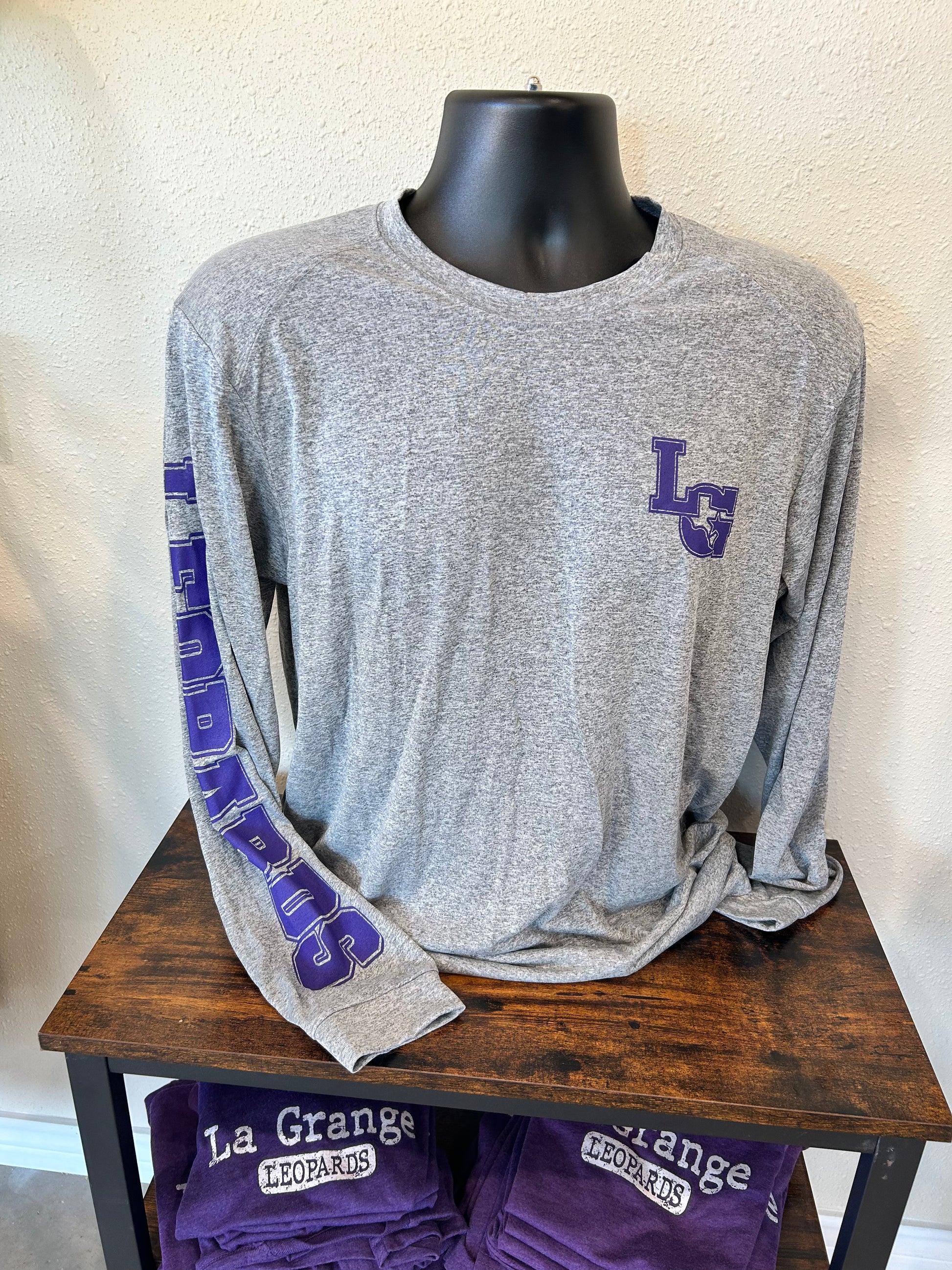 Heather Gray DriFit Tee with LG Chest & LEOPARDS Sleeve Print. SKU9