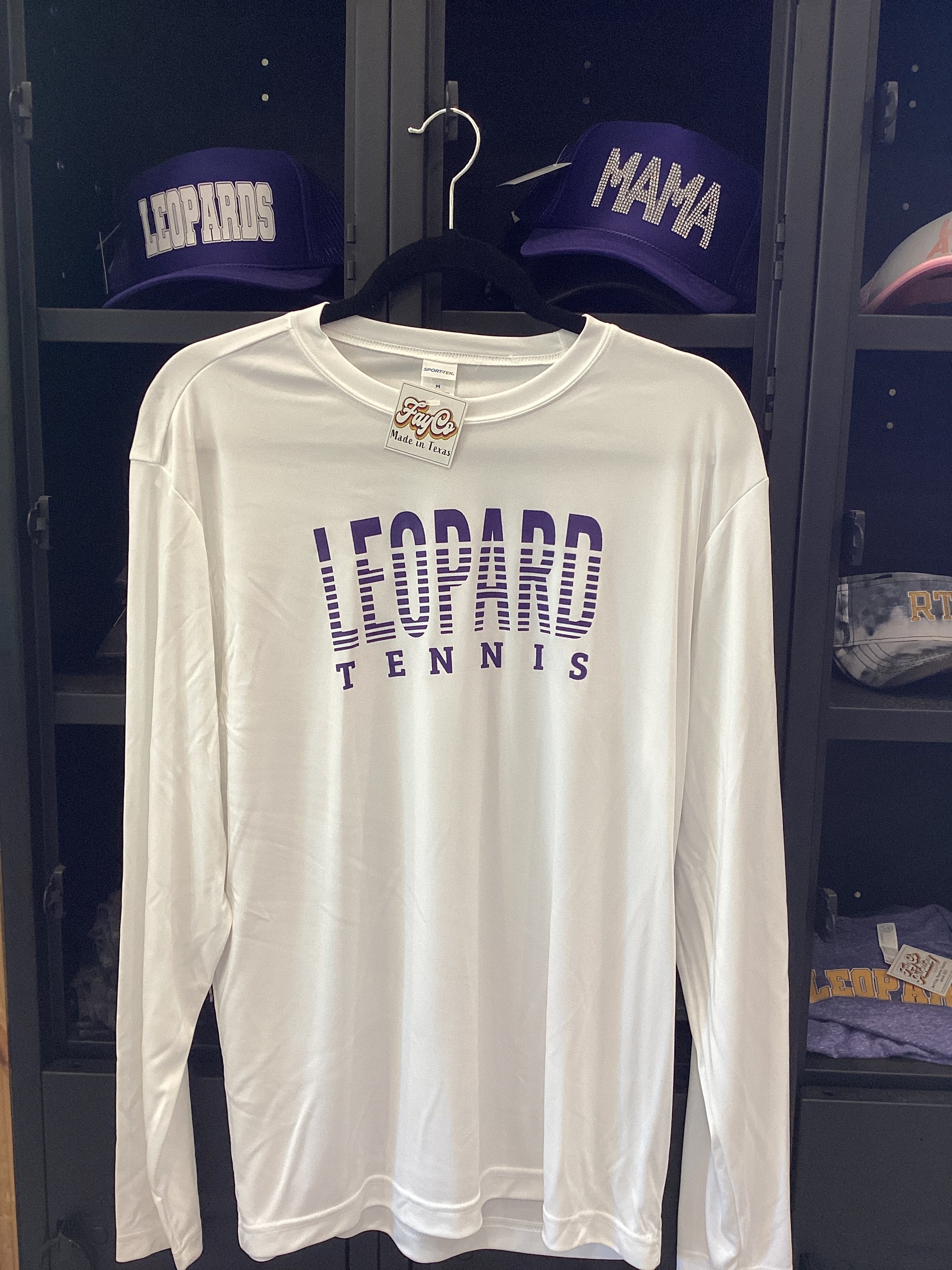 LG “Leopard tennis” white drifit long sleeve tee