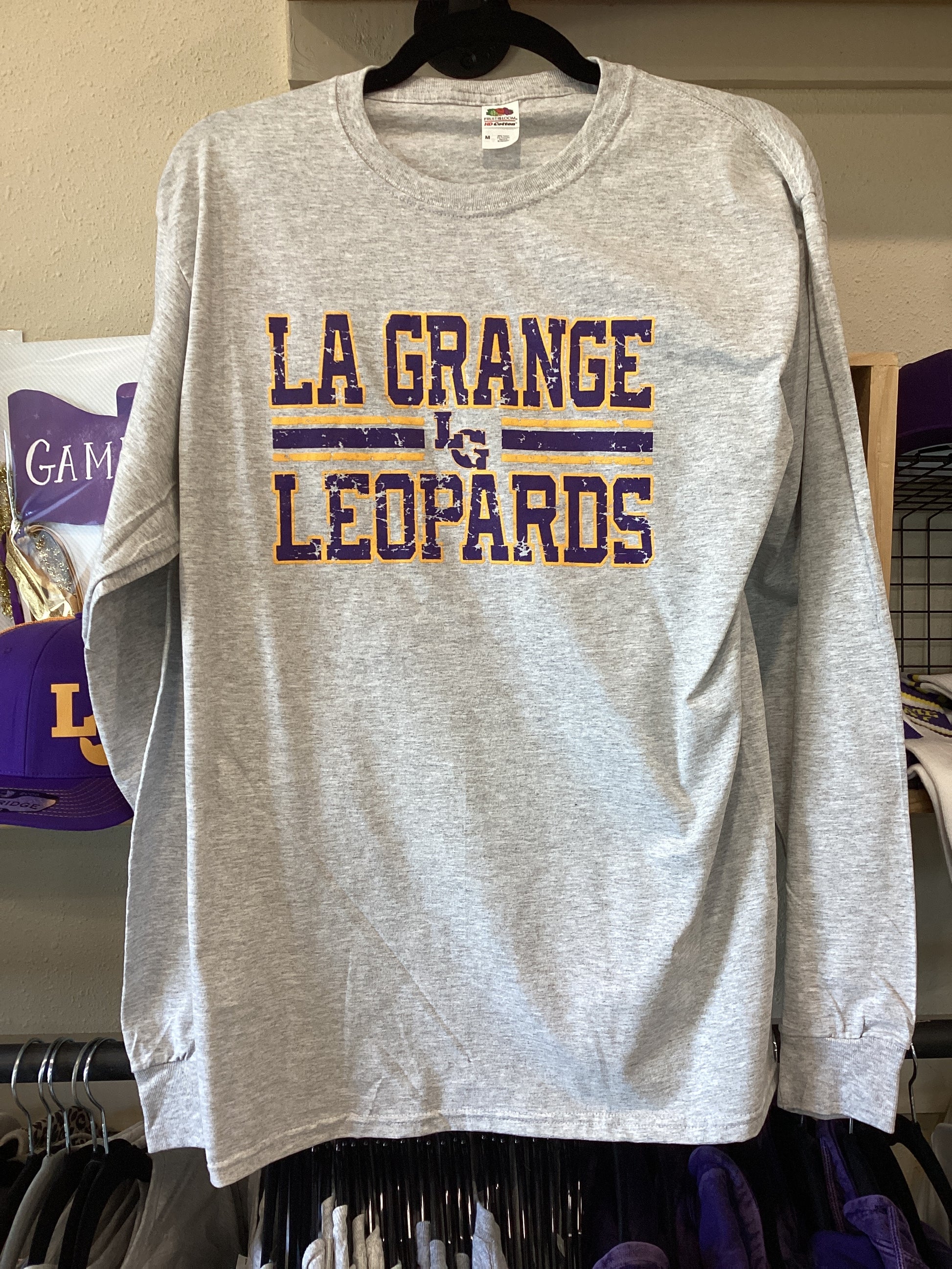 LG Grey Long-sleeve tee with Leopards screen print graphic design on the front. SKU31