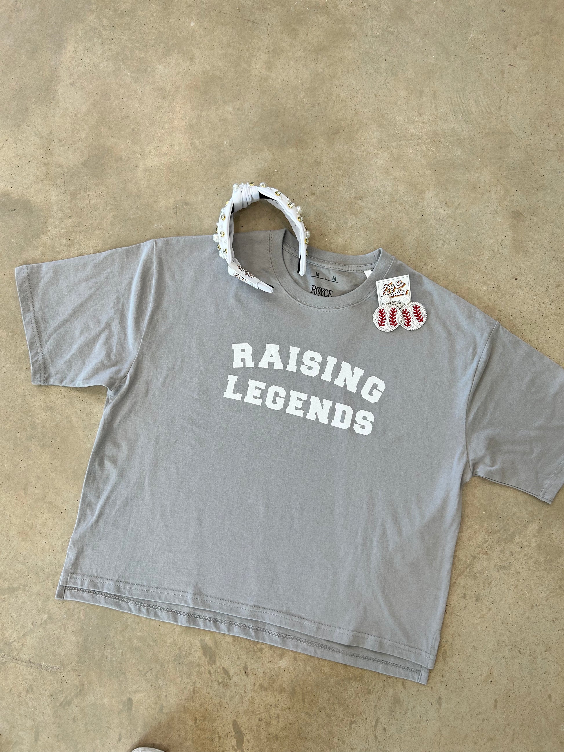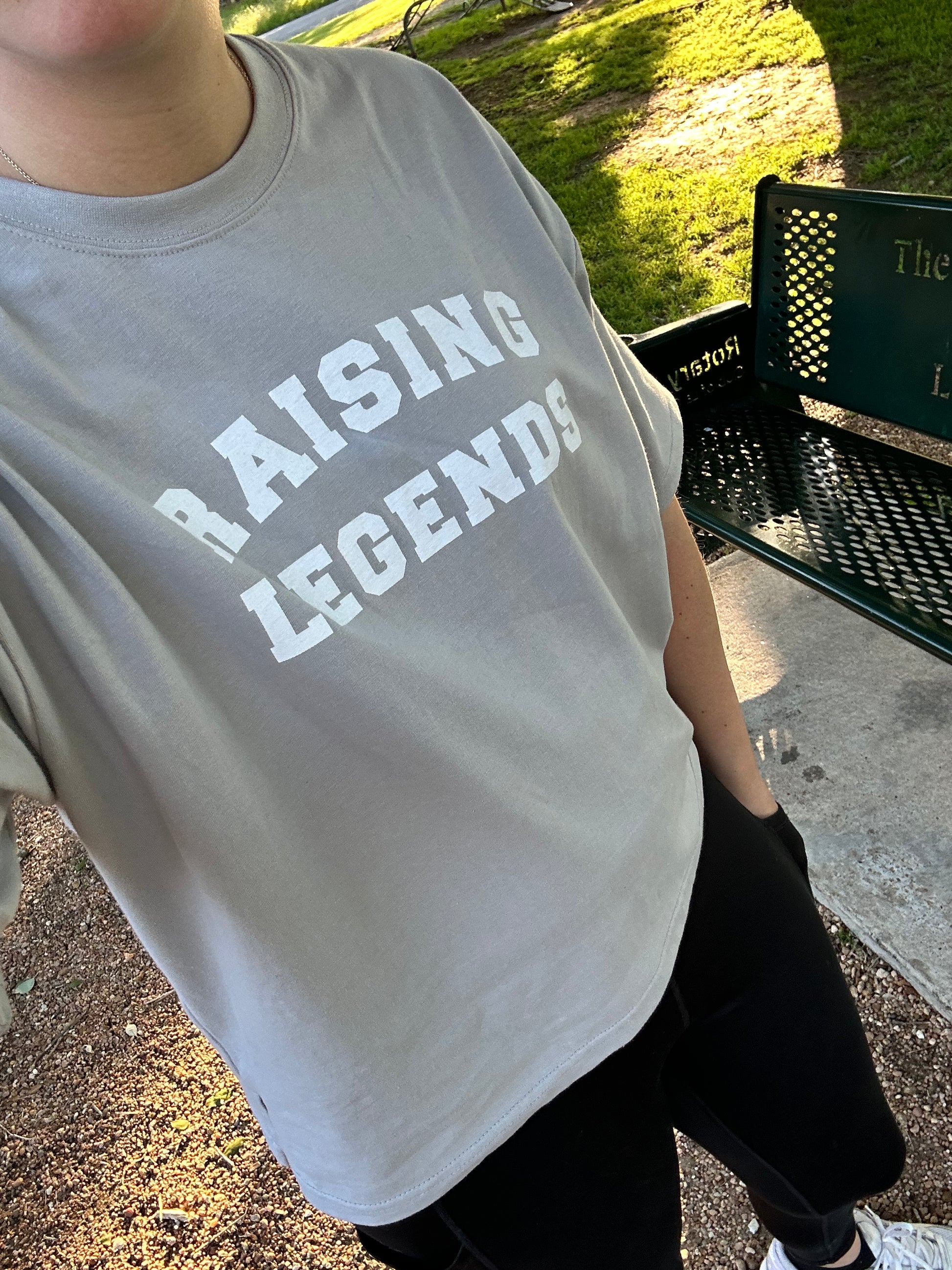 Raising Legends on Oversized Mock Crop Tee. Full Coverage with oversized fit. Super comfy fit.