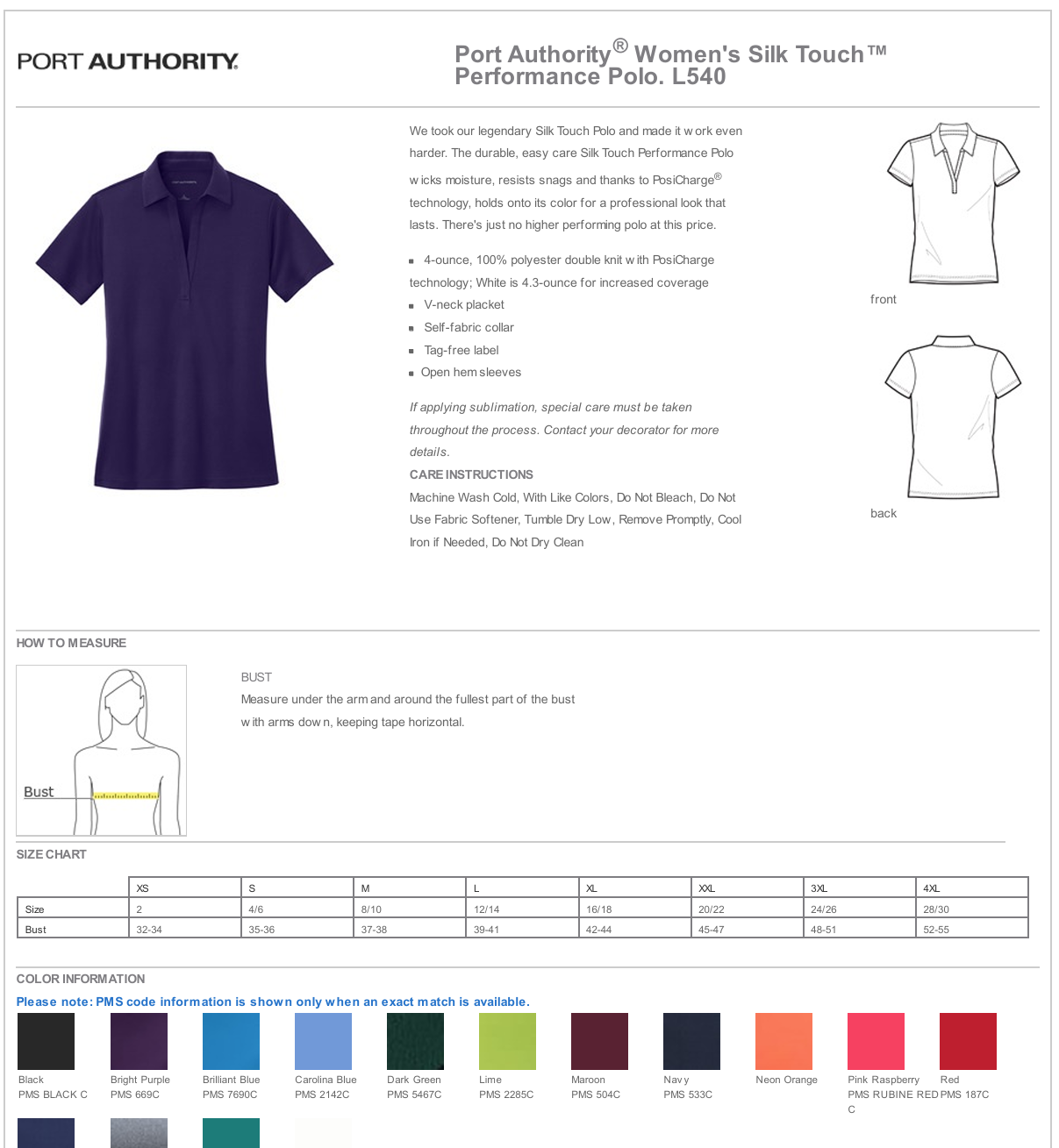 Pre-Order your Sacred Heart embroidered uniform shirts here. Logo will be embroidered in white on the left chest. Available in both adult & youth sizes. Polos are Port & Company short sleeve, dri-fit material, and LADIES fit. Product details are listed below.