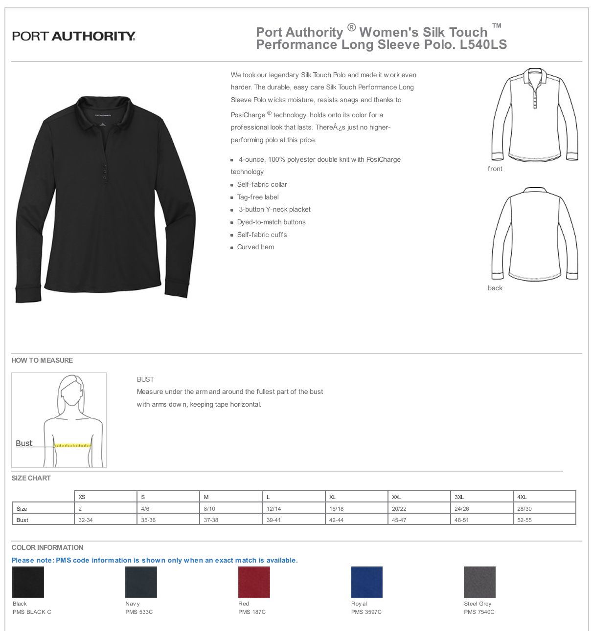Pre-Order your Sacred Heart embroidered uniform shirts here. Logo will be embroidered in white on the left chest.. Polos are Port & Company long sleeve, dri-fit material, and LADIES fit. Product details are listed below.