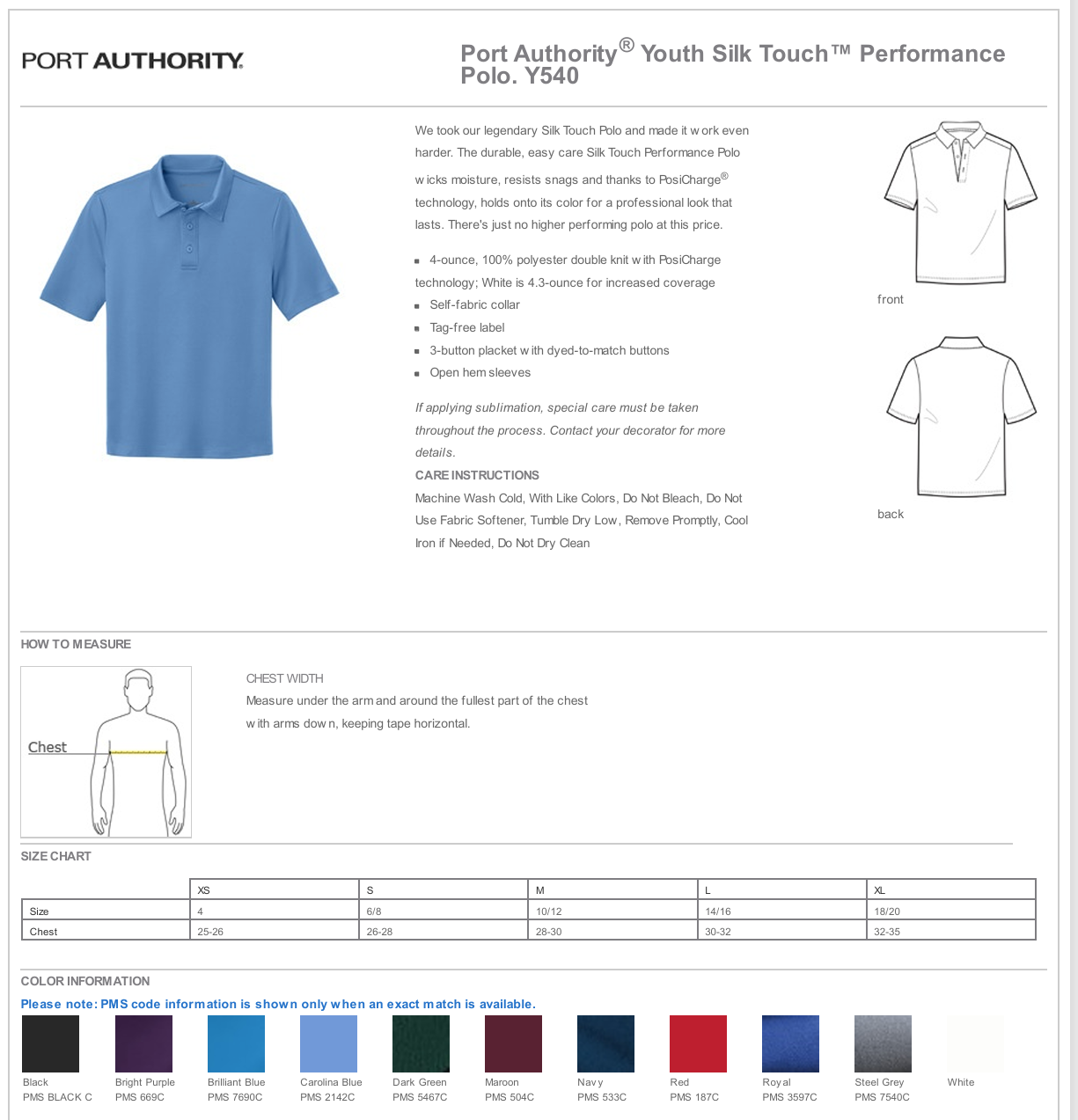 Pre-Order your Sacred Heart embroidered uniform shirts here. Logo will be embroidered in white on the left chest. Available in both adult & youth sizes. Polos are Port & Company short sleeve, dri-fit material, and unisex fit. Product details are listed below.