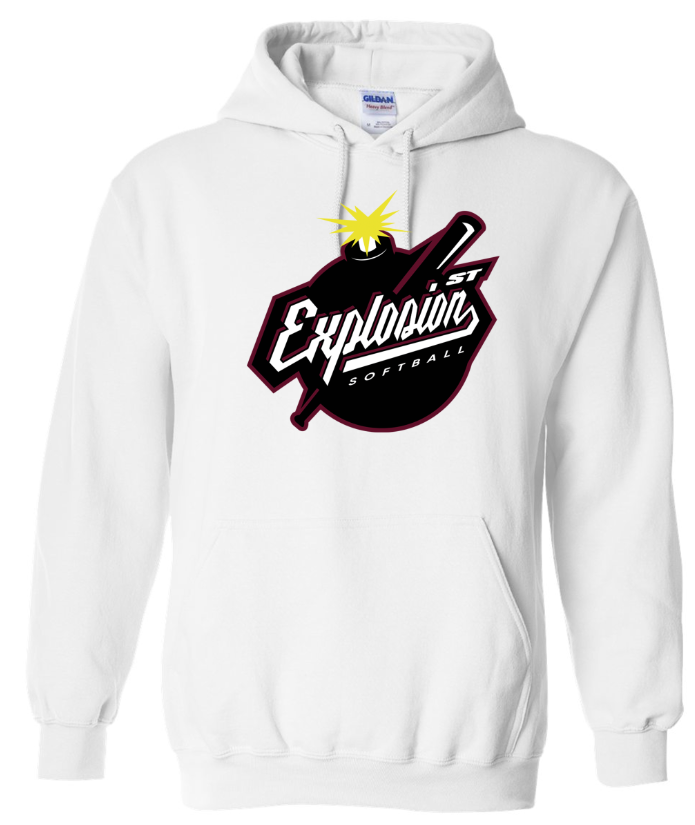 St. Explosion's screen printed on a Unisex fit hoodie. Available in Heather Maroon, Sport Grey, & White.